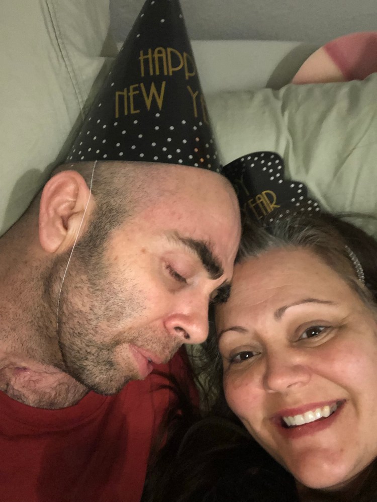 Sweet Randy. We both laughed about how different life has become. This time last year, we were out country dancing the night away. Tonight, we shared a hospital bed in a Neuro Rehab, as I wrestled his head that keeps bumping into mine from the neck spasms. He did manage a mumbled “Happy New Year” to the kiddos on video, and by 8:15 he was worn out.